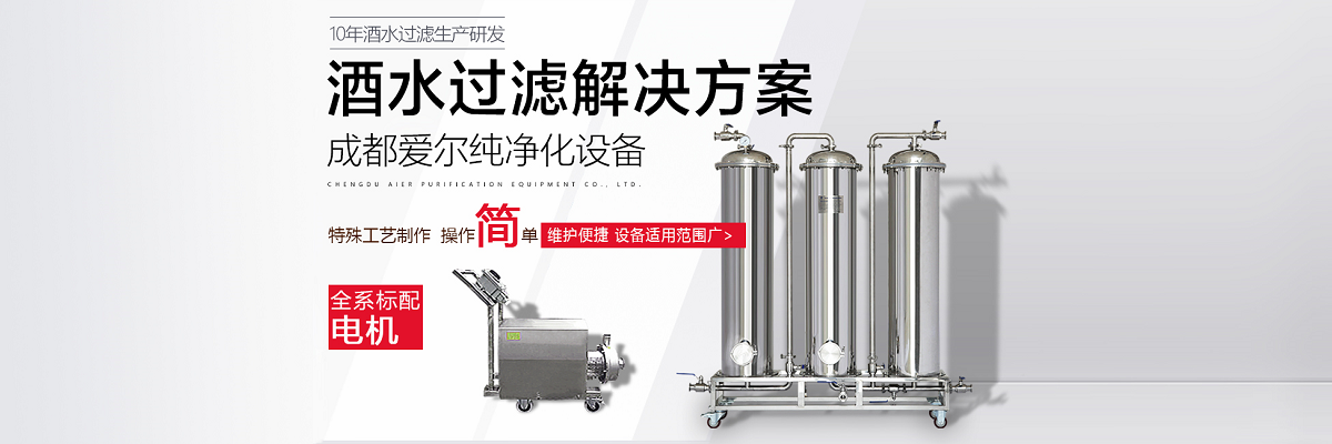 成都愛爾純凈化設(shè)備有限公司,坐落于美麗的天府之國,成都市溫江區(qū)海峽科技園工業(yè)區(qū),專業(yè)從事于過濾、凈化技術(shù)的研發(fā)應(yīng)用,產(chǎn)品有保健酒過濾設(shè)備、白酒過濾設(shè)備、白酒凈化設(shè)備、水凈化設(shè)備等,公司引進(jìn)世界先進(jìn)過濾分子技術(shù),結(jié)合專業(yè)技術(shù)人員資深多年實(shí)踐經(jīng)驗(yàn),解決酒類、飲水類后期處理難題。 業(yè)務(wù)涵蓋,酒類過濾:除混濁沉淀,澄清處理、除苦味,異雜味,新酒催熟陳化處理 、除塑化劑、固形物、雜醇油、甲醇及各類含量超標(biāo)后期處理。 水類:軟水、純凈水、礦泉水、飲料等凈化處理。用心為客戶提高生產(chǎn)效率、提高產(chǎn)品質(zhì)量、降低生產(chǎn)成本、環(huán)保減排而開發(fā)創(chuàng)新,堅(jiān)持奮斗。 公司至誠每一位客戶,“誠信服務(wù),客戶至上”為宗旨,為客戶要求,用心凈化每一點(diǎn)滴,我們都將以精準(zhǔn)的數(shù)據(jù)化設(shè)計(jì)、嚴(yán)格的設(shè)備制作質(zhì)量把關(guān)、快捷專業(yè)的安裝調(diào)試以及周到的售后服務(wù),解決客戶生產(chǎn)過程中遇見的各種酒、水后期處理的技術(shù)難題。